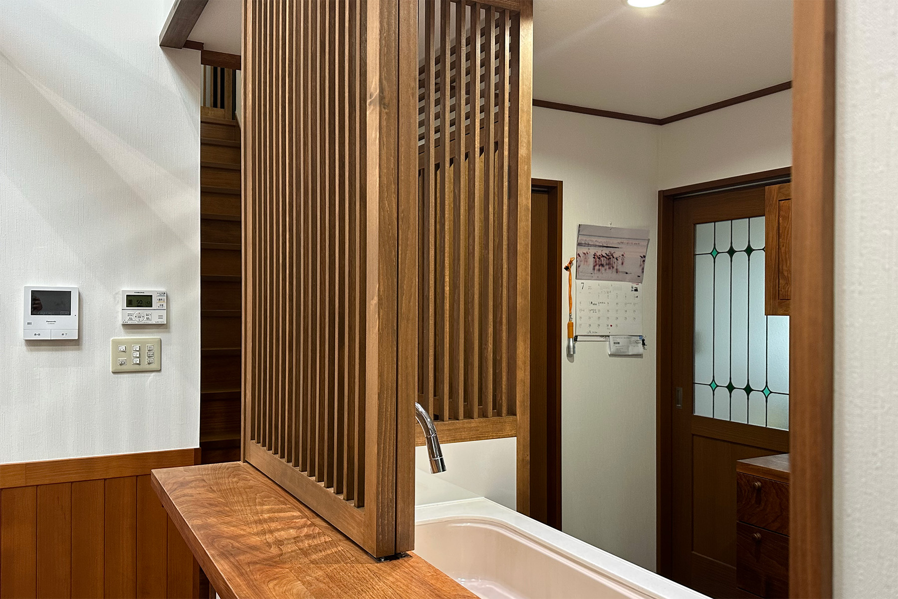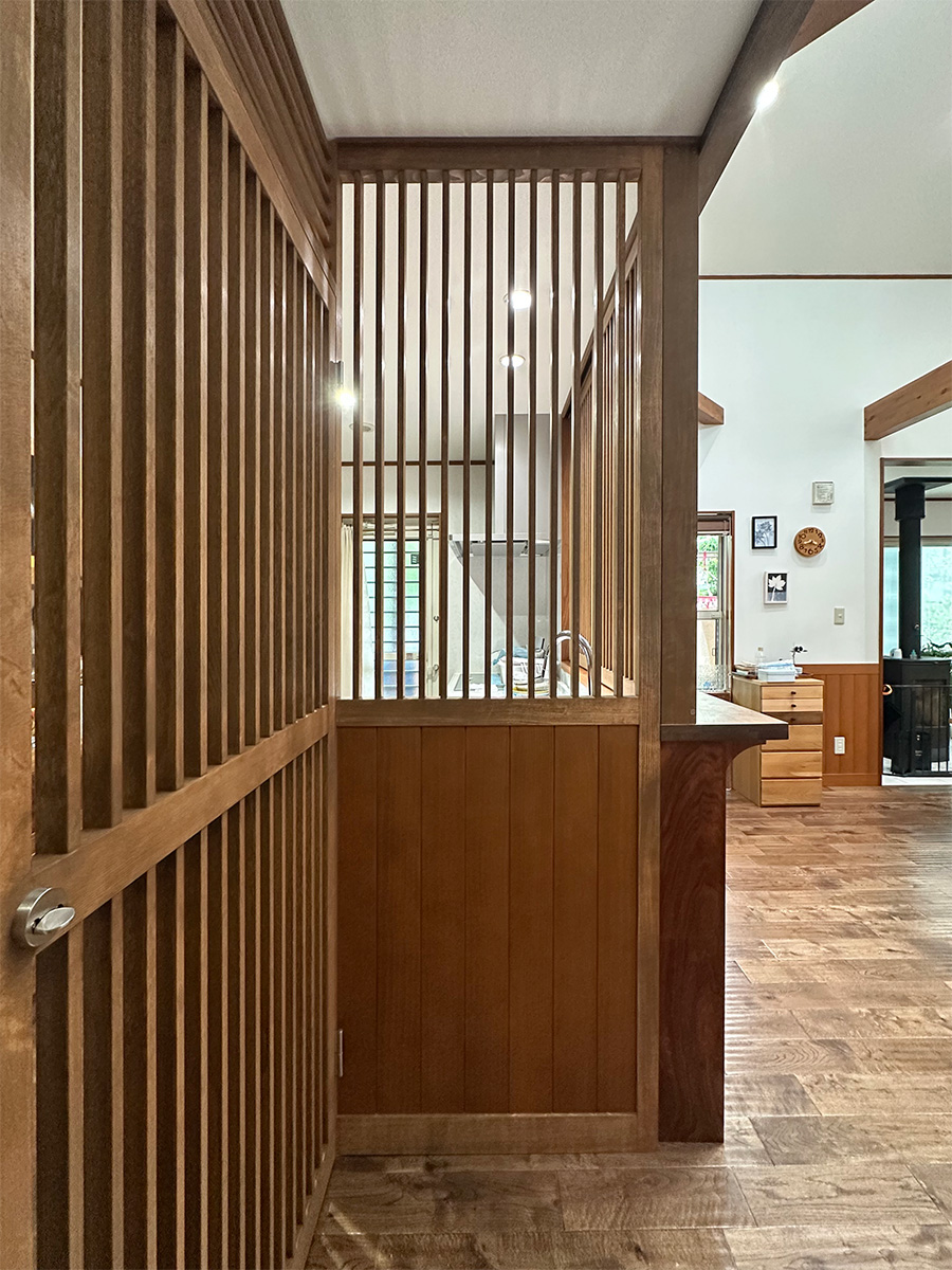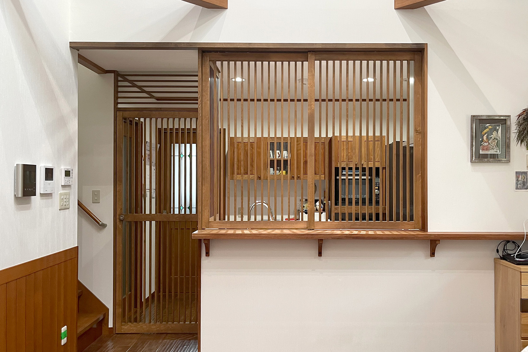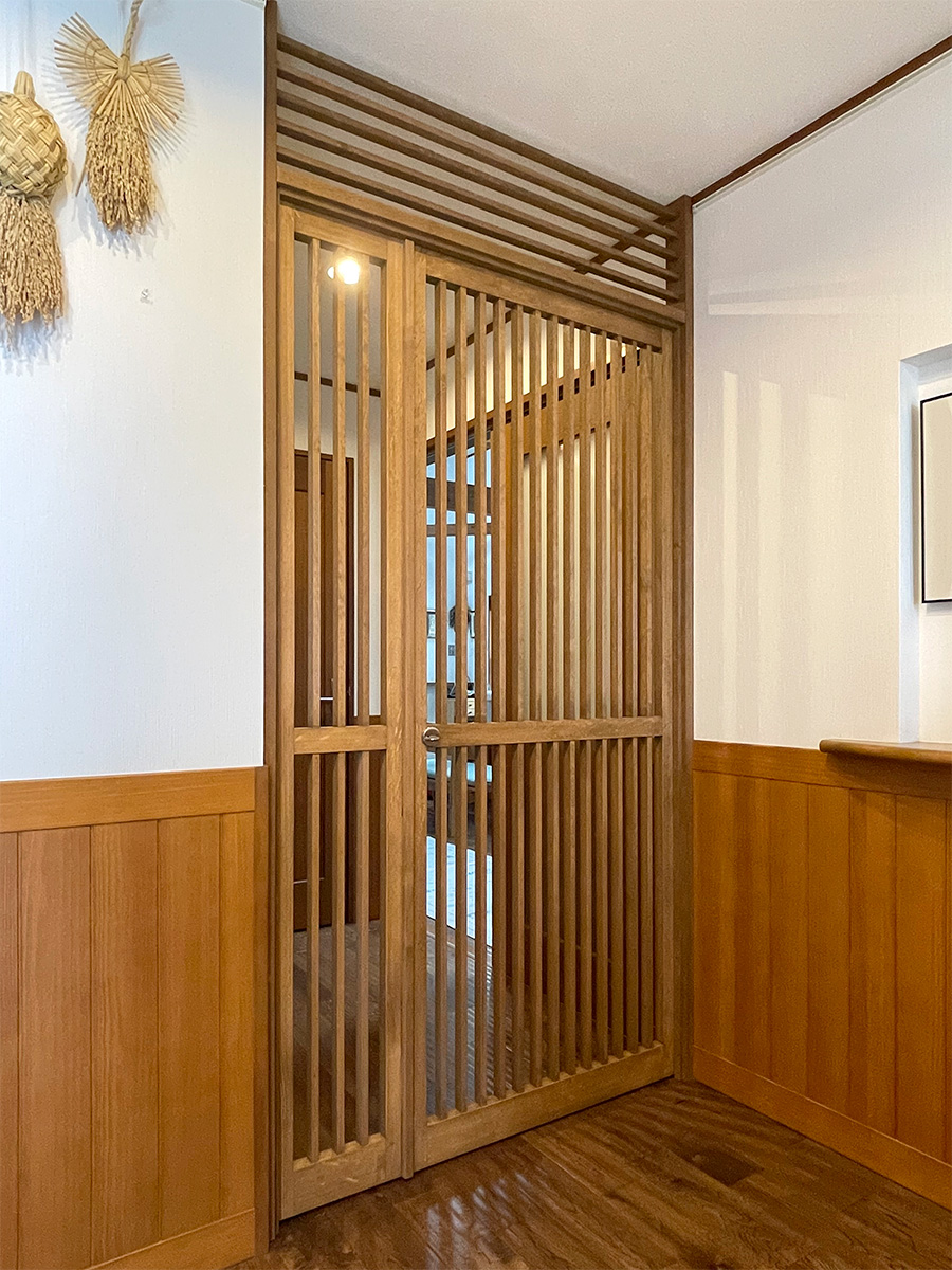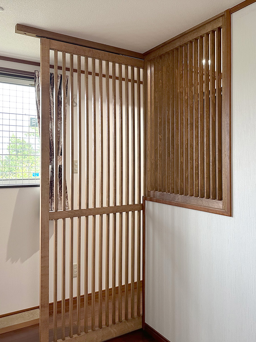 建具職人が造作した格子柵をお部屋のインテリアに合うカラーに塗装。