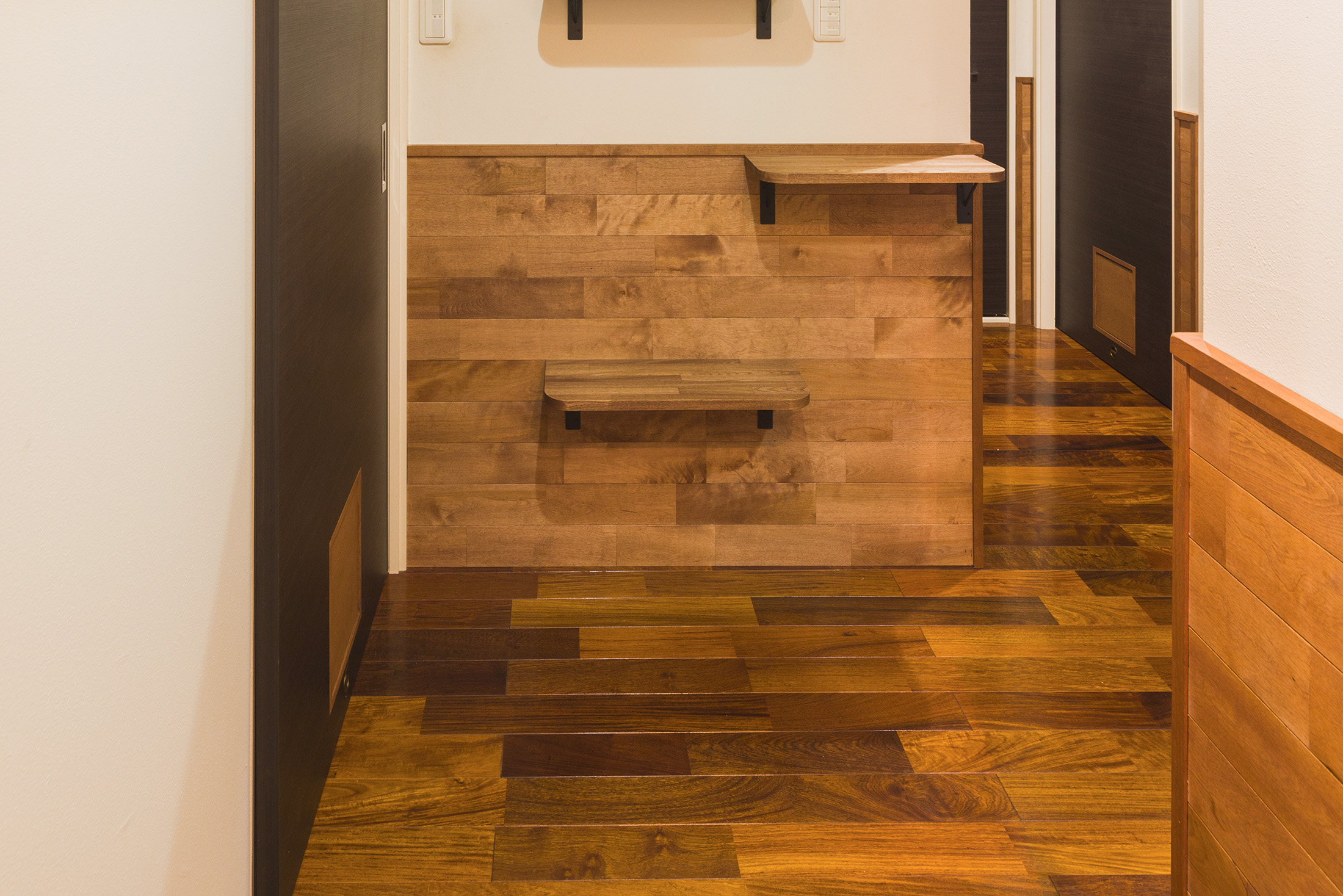 キッチンパネルのような化粧板を採用すると、スプレー行動などの汚れも拭きやすくブリーダーさまにもお勧めです。